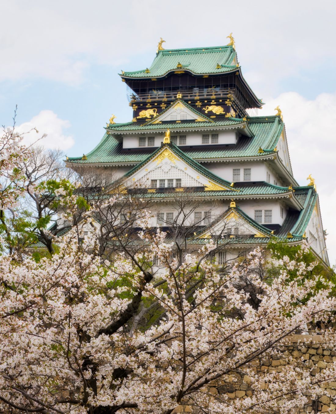 Osaka Castle surrounded by beautiful sakura cherry blossom, one of the most iconic signs of spring in Japan.