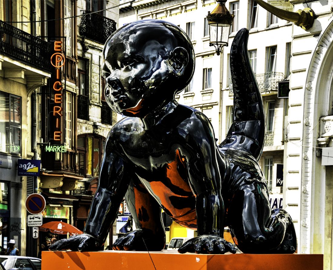 Roman Ivanyuchenko, fiberglass, steel, enamel conceptual statue part of the Angel-Demon parade, Lille, 2009