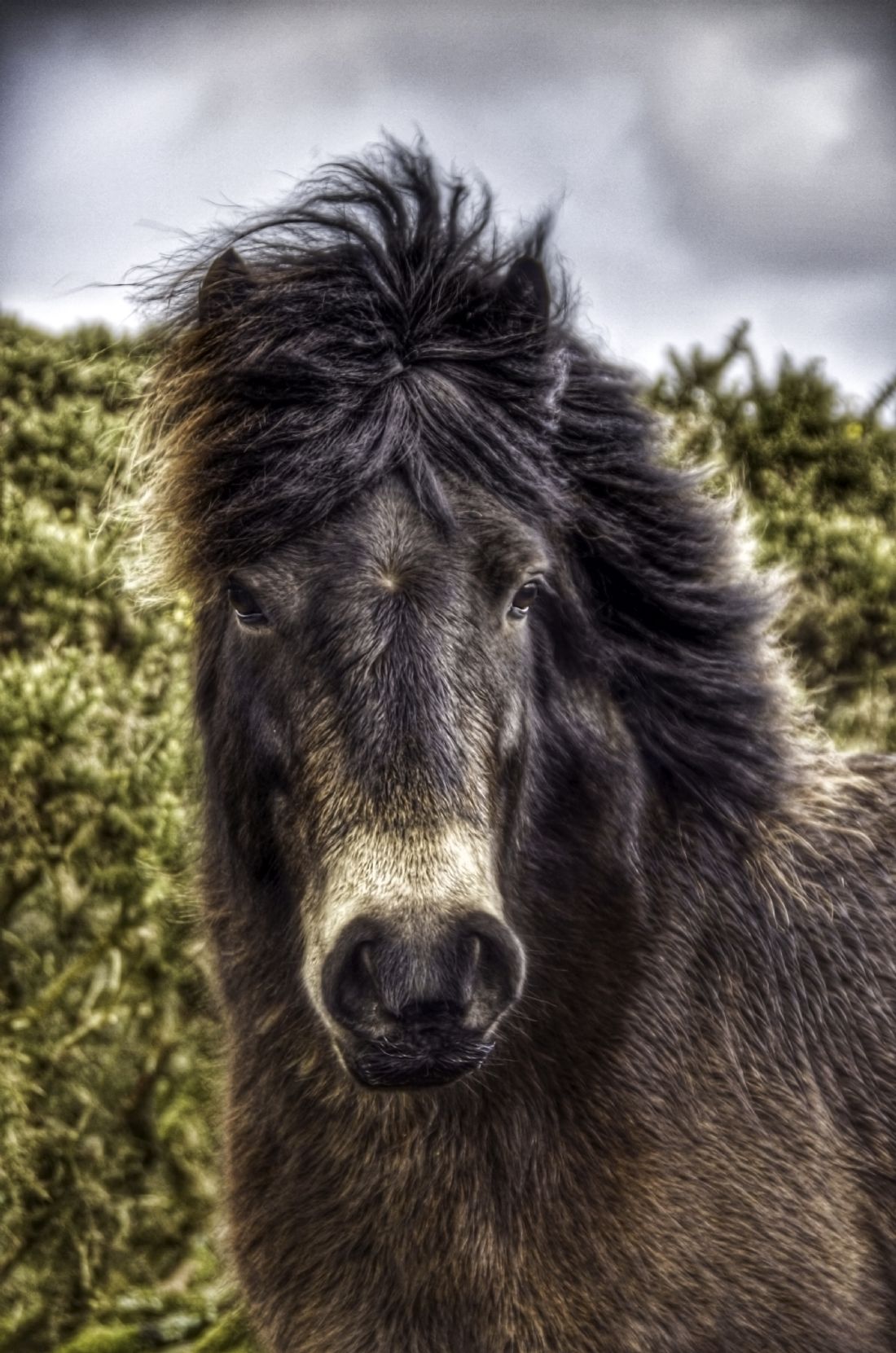 Exmoor pony, windswept mane