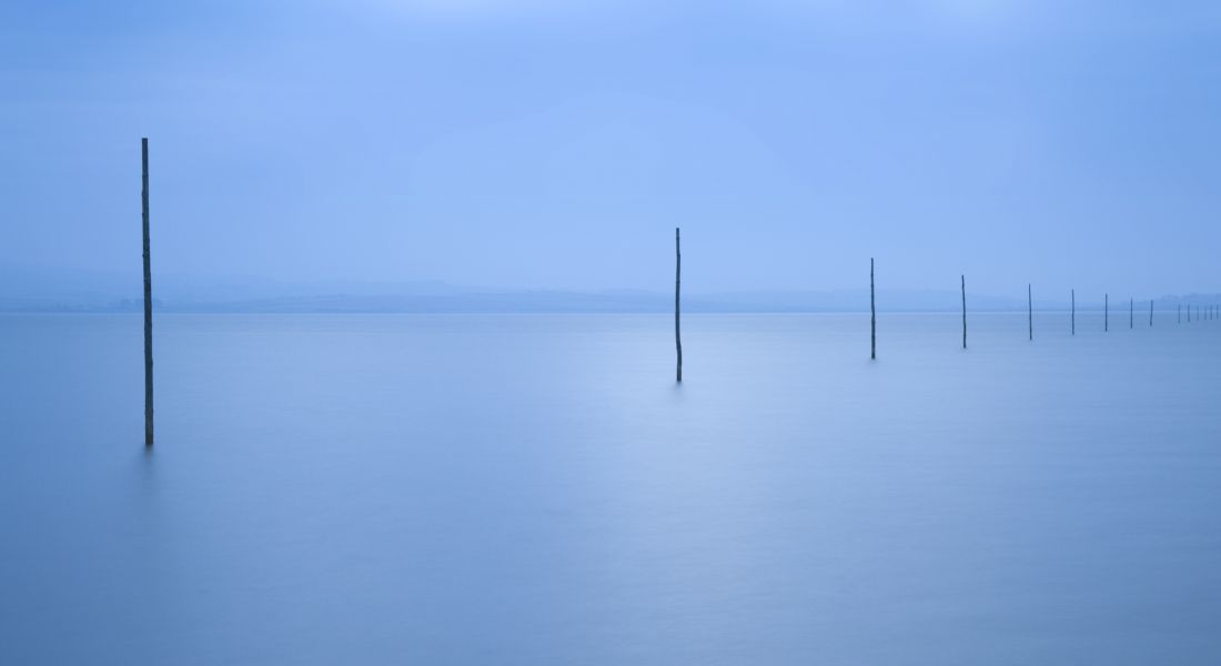 I'd been wanting to capture these posts looking back towards the mainland from Holy Island for some time, but the opportunity finally came when we were staying on the island for a few days. We were due a high tide around sunset, then just before sunset cloud descended on the horizon and blocked out the sun, but that little splash of light just gave this minimalist scene that certain something that made it work for me.