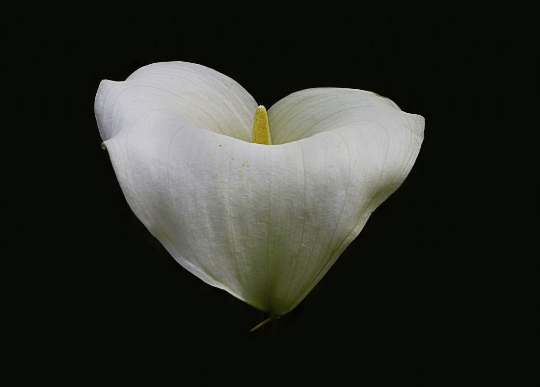 Portrait of Zantedeschia aethiopica, the first calla or arum lily to bloom this year.
