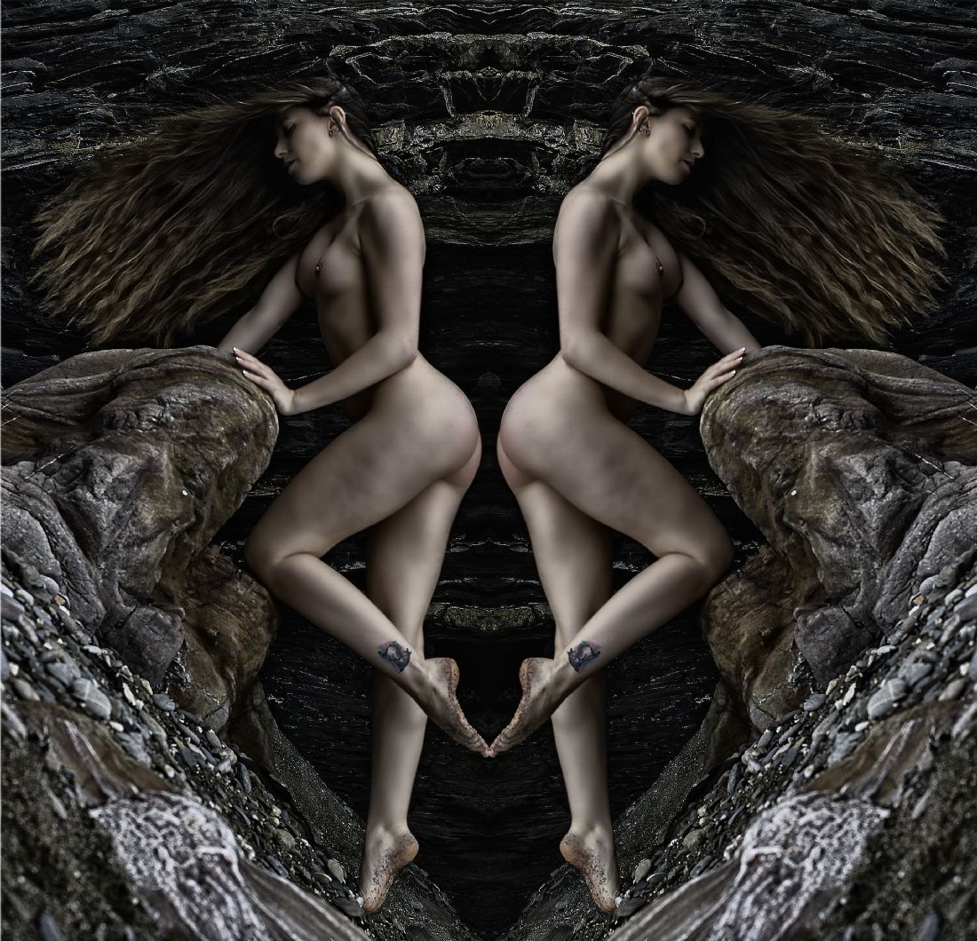 - art, nude, female, reflected, natural, light, shadows